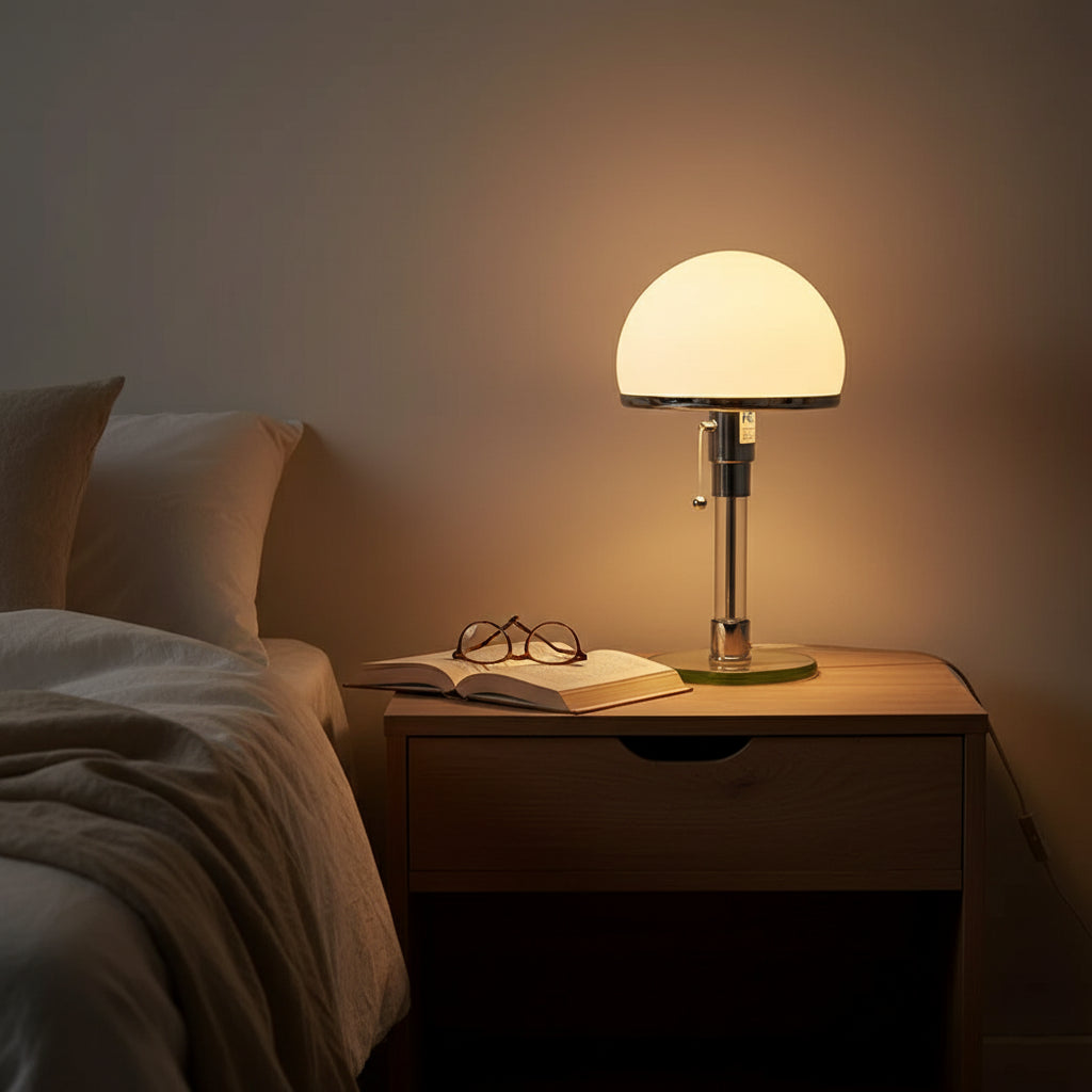 Épurée et élégante, la lampe de chevet Bauhaus diffuse une lumière douce grâce à son verre dépoli. Parfaite pour créer une ambiance moderne et apaisante dans votre chambre.