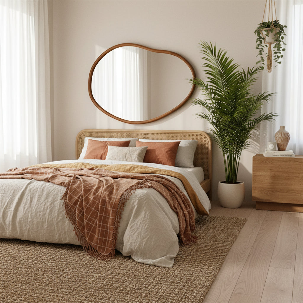 Avec son cadre en bois doux et sa forme irrégulière, ce miroir apporte une touche chaleureuse et apaisante à votre chambre. Il illumine votre espace tout en offrant un charme naturel et moderne.